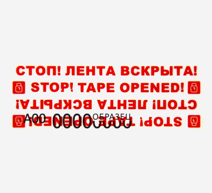 оставляет следы на объекте опломбирования и наклейке ("СТОП! ЛЕНТА ВСКРЫТА! STOP! TAPE OPENED!")